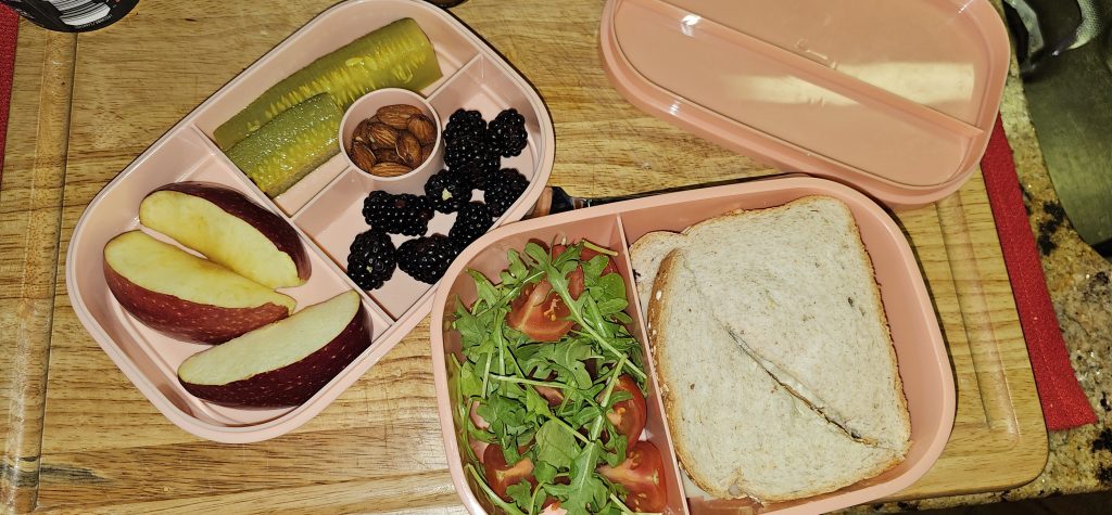 - My Bento box-I know they’ve been around since at least the 12th century in Japan, but I just discovered them recently when they started being popular. I know that some people think it’s crazy to jump on the bandwagon, but this really works. I love the little compartments because it truly limits what I can and can not fit in them, and also forces me to have way more variety in my diet. I’ve included a picture below of what is in my box today.